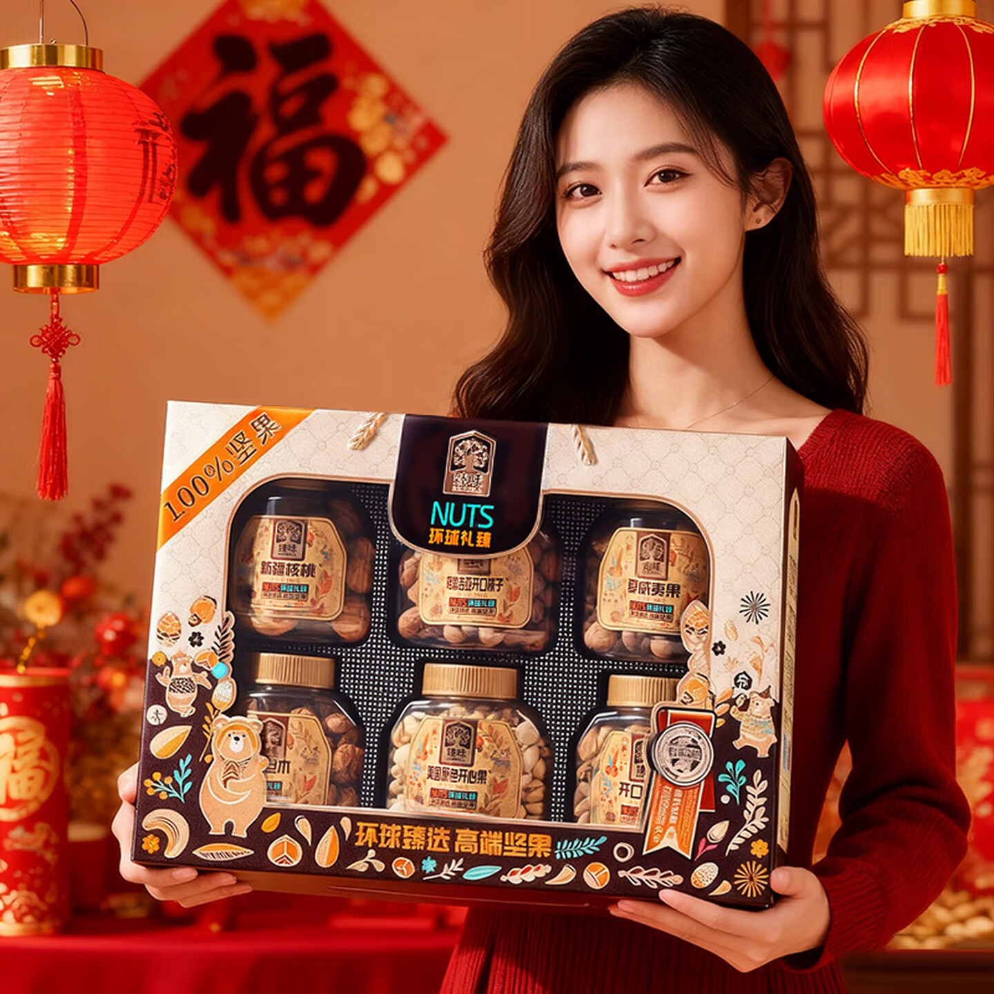 臻味高端纯坚果礼盒6罐装1520g环球礼臻开心果年货春节礼品福利送礼