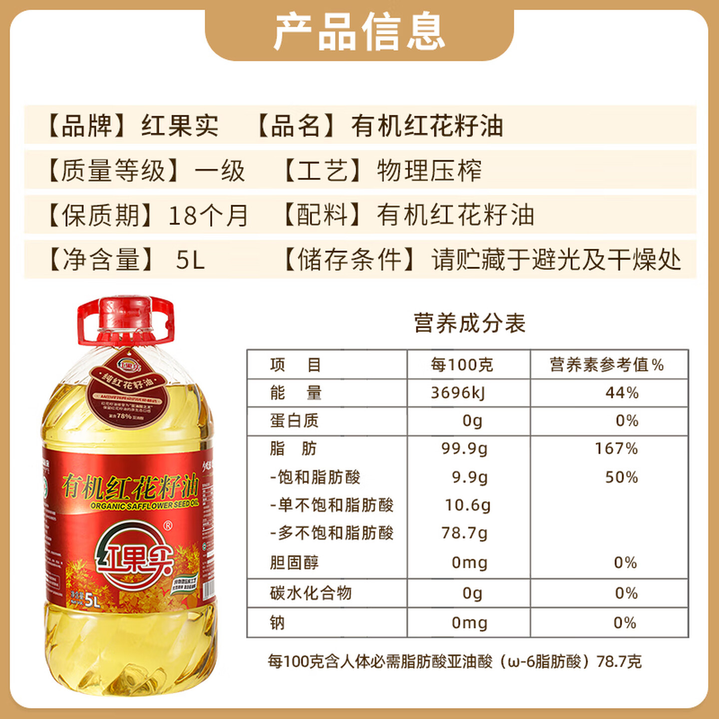红果实 新疆有机红花籽油5L食用油礼盒装 进口原料 物理压榨 高亚油酸
