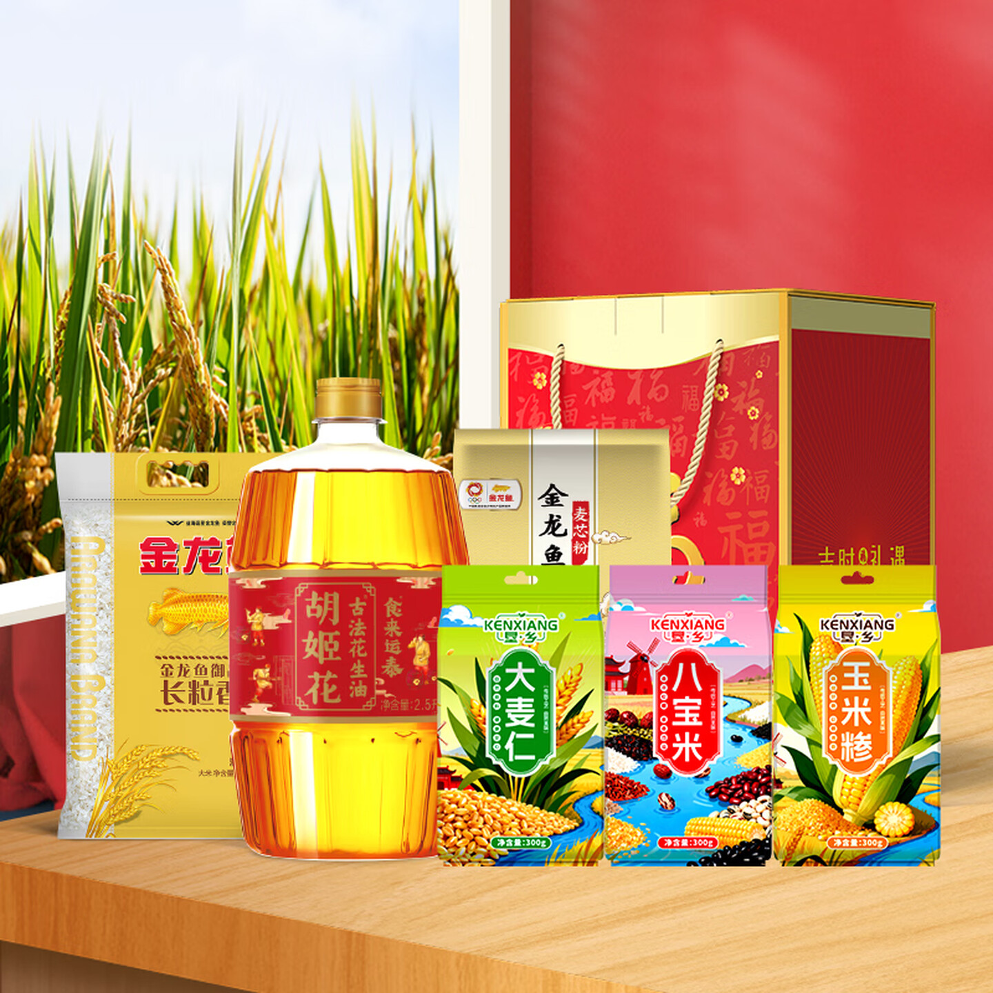 垦·乡KENXIANG杂粮米面油组合套装年货粮油礼盒三件套过年送礼乐享款4.4kg+2.5L