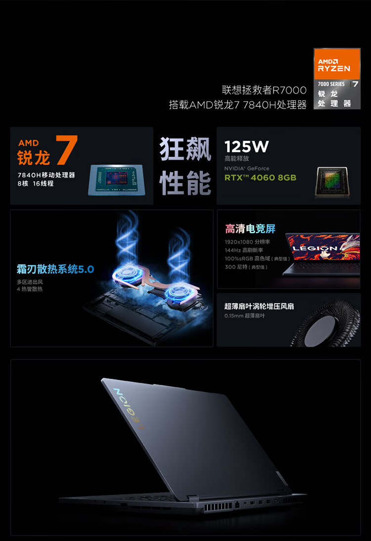 联想(Lenovo)拯救者R7000 游戏笔记本电脑 15.6英寸超能电竞本(R7-7840H 16G 512G RTX4060显卡 高刷高色域屏)