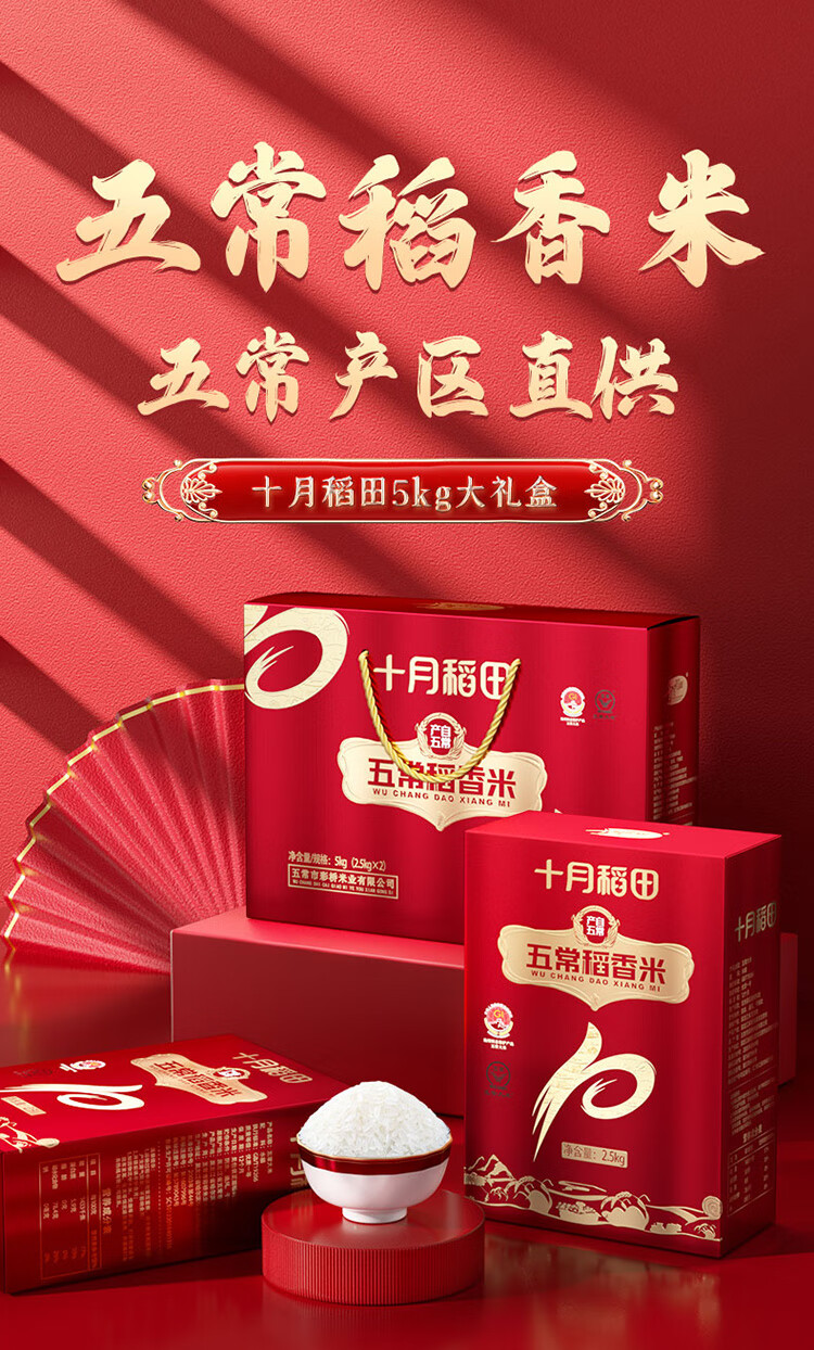 商品名称:十月稻田 25年新米 五常大米 东北大米 礼盒 10斤 (节日团购 5斤*2盒)