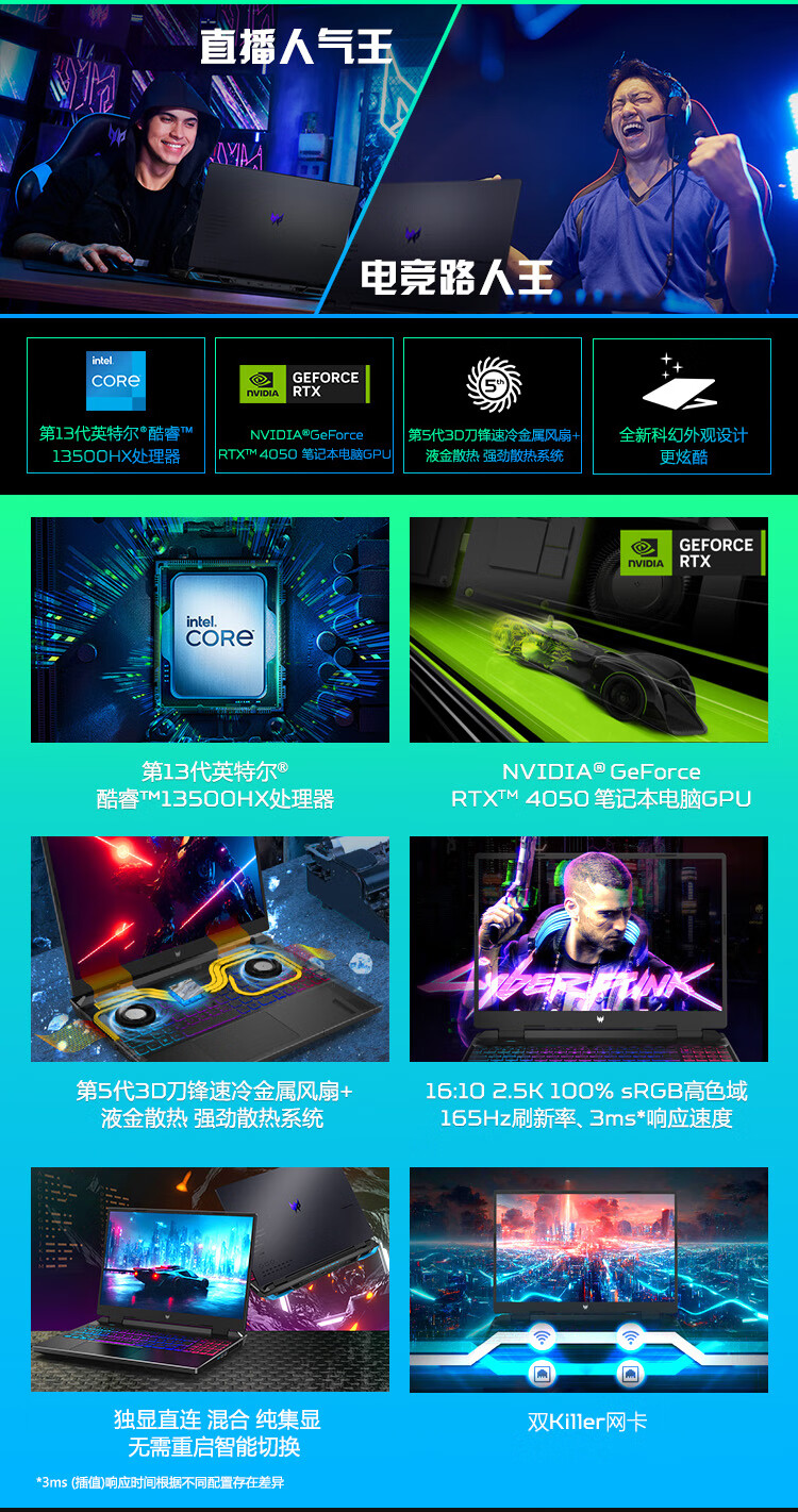 商品名称:宏碁(acer)掠夺者·擎Neo 16英寸2.5K电竞游戏本 工作站级笔记本电脑(13代酷睿i5-13500HX 16G 512G RTX4050)