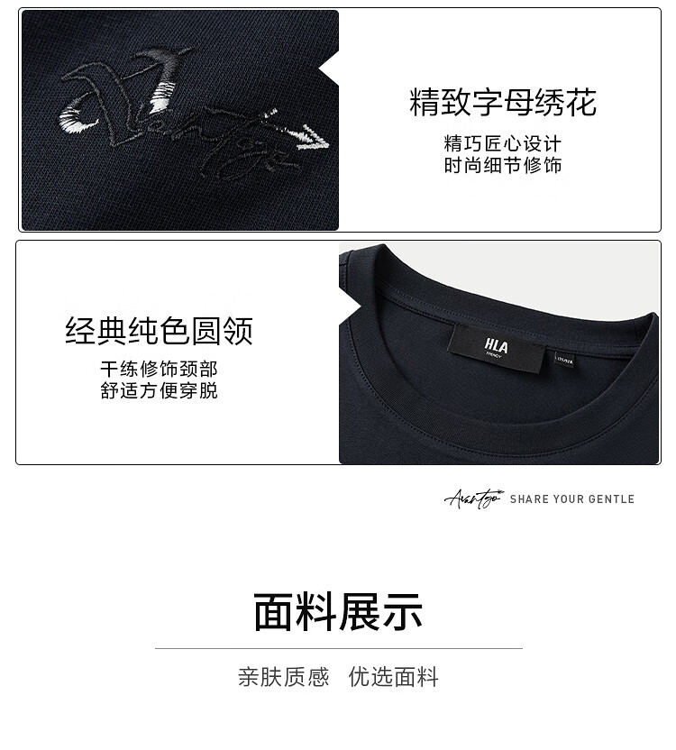 商品名称:HLA海澜之家短袖T恤男24轻商务时尚系列绣花短t男夏季
