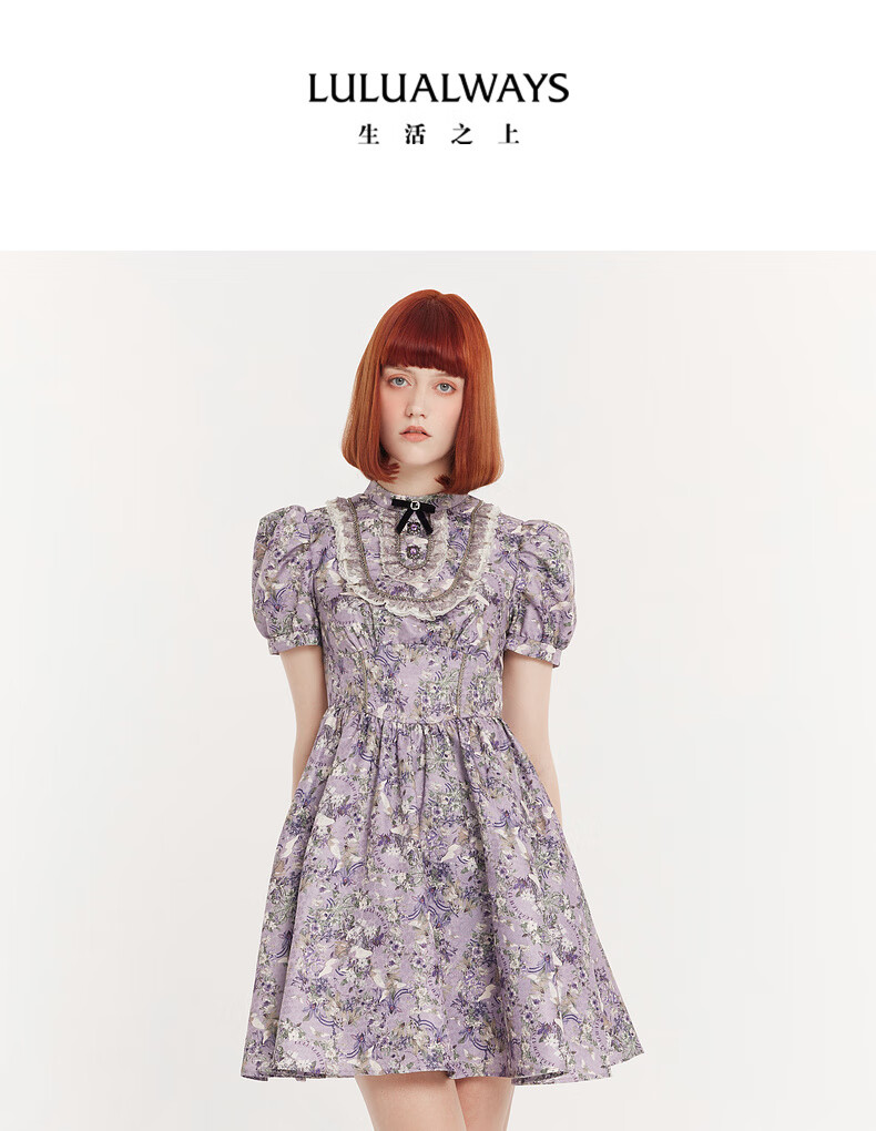 商品名称:LULUALWAYS我爱露露24夏季新款千金名媛甜美华丽提花短款连衣裙 紫色 S