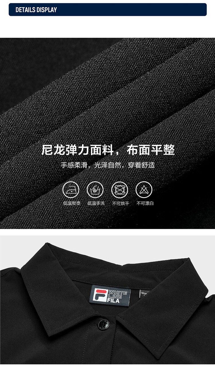 商品名称:FILA 斐乐官方女子梭织连衣裙2024夏季新款时尚宽松翻领收腰裙子 正黑色-BK 170/88A/L