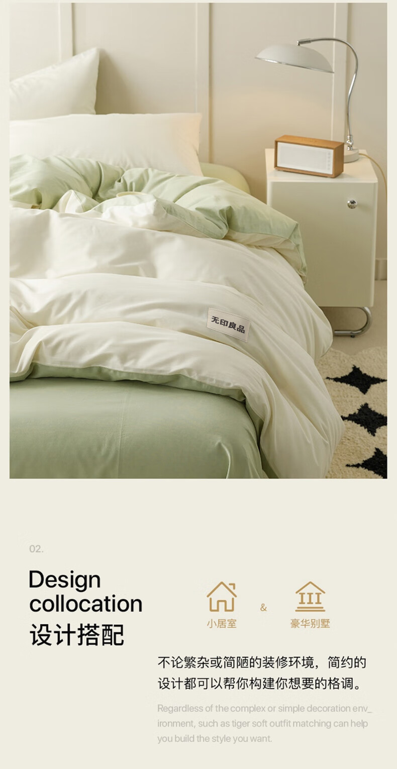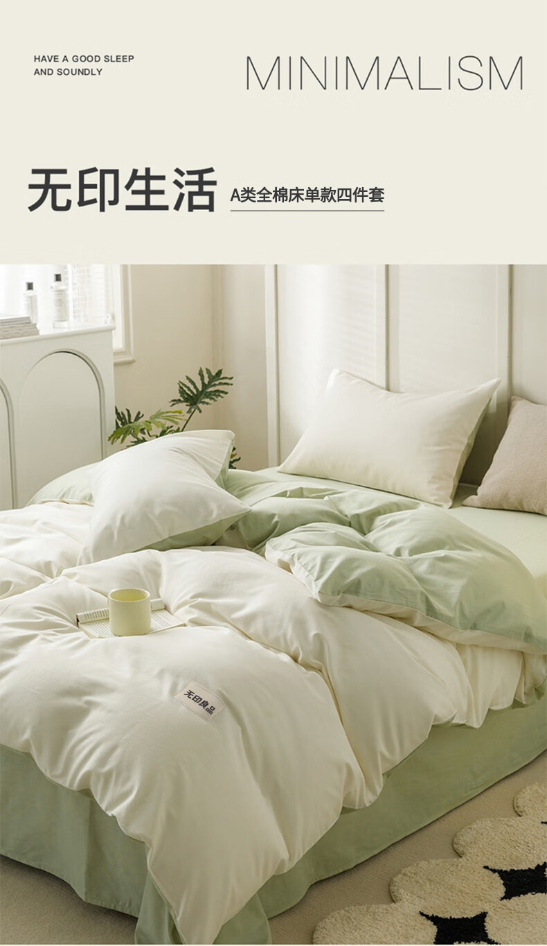 无印良品A类抗菌纯棉床上四件套 1.5/1.8米床单被套200*230cm清新绿